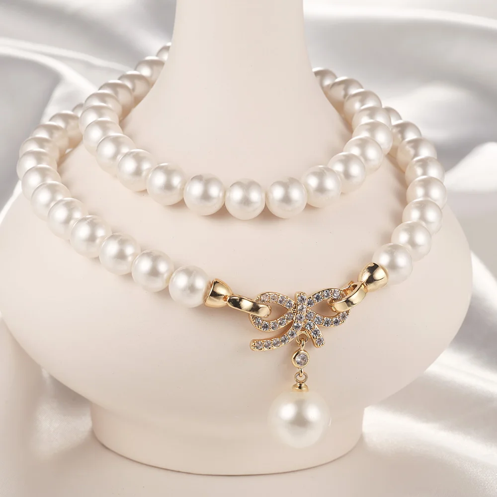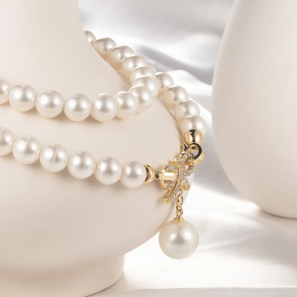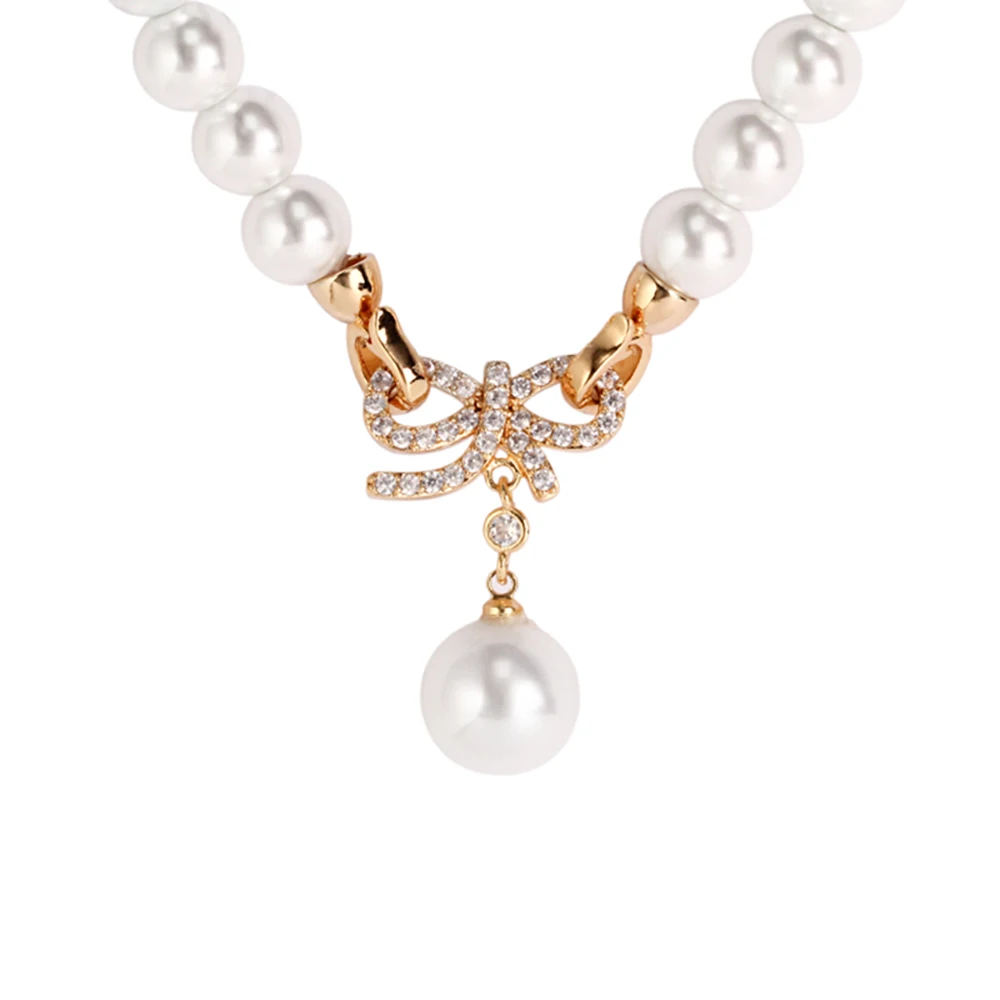 18K Gold Plated Women's Pearl Necklace With Zircon Pendant Classic Party Jewelry for Ladies Chain Gift Stock in USA Warehouse