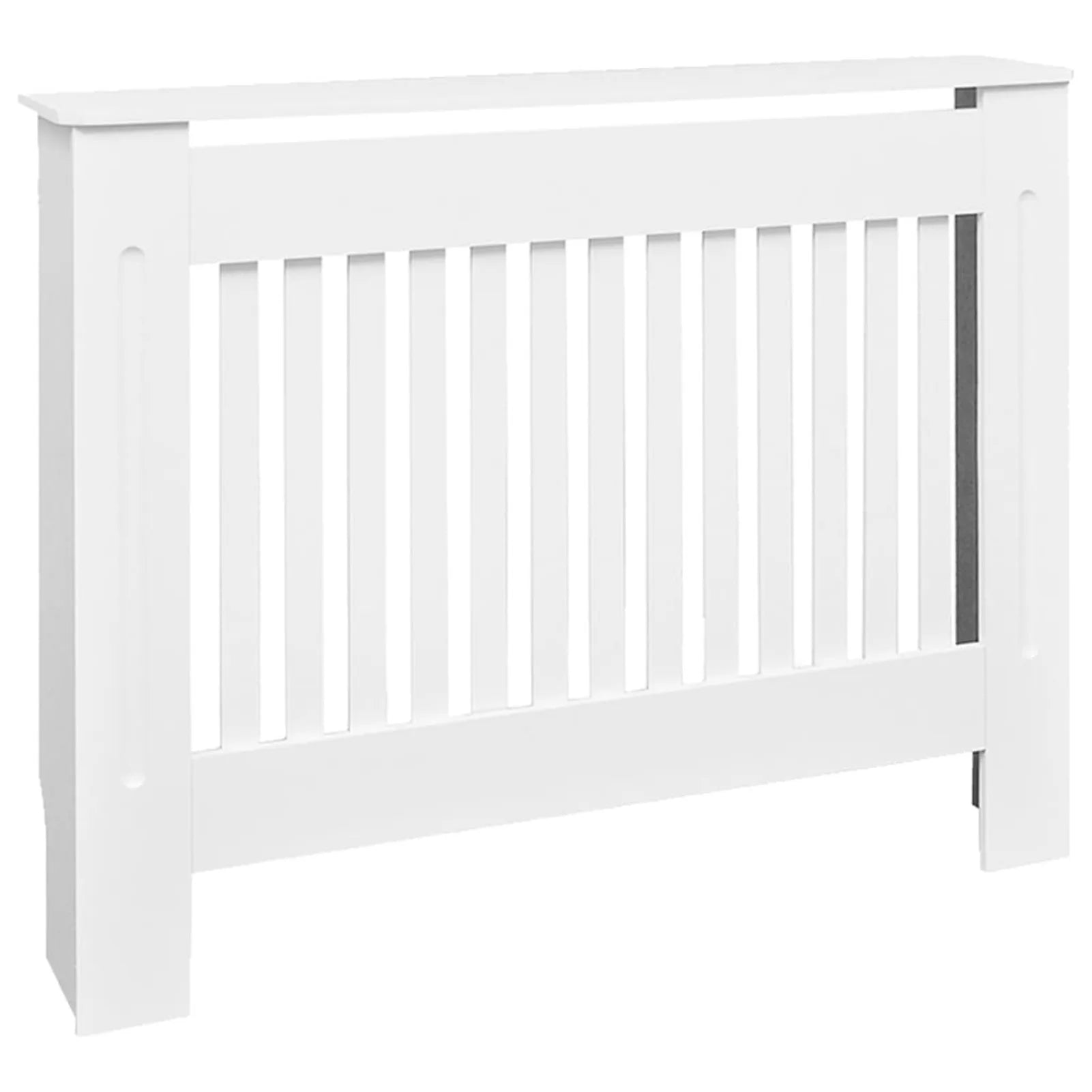 - Decorative radiator cover with a modern, slatted design adds visual appeal while concealing the heating unit, helping you create a cohesive living room.
