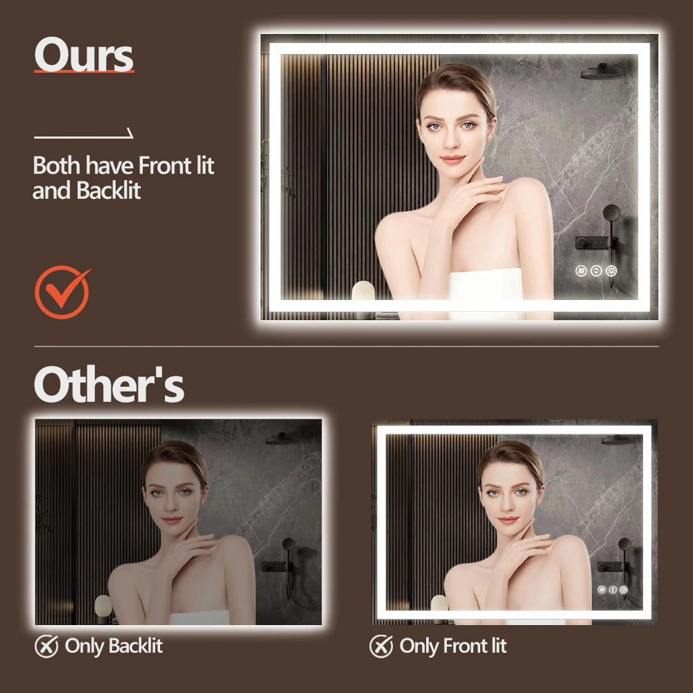 24"x32" LED Bathroom Mirror with Lights Front and Backlit, Lighted Vanity Mirror for Bathroom Wall with 3 Colors Dimmable
