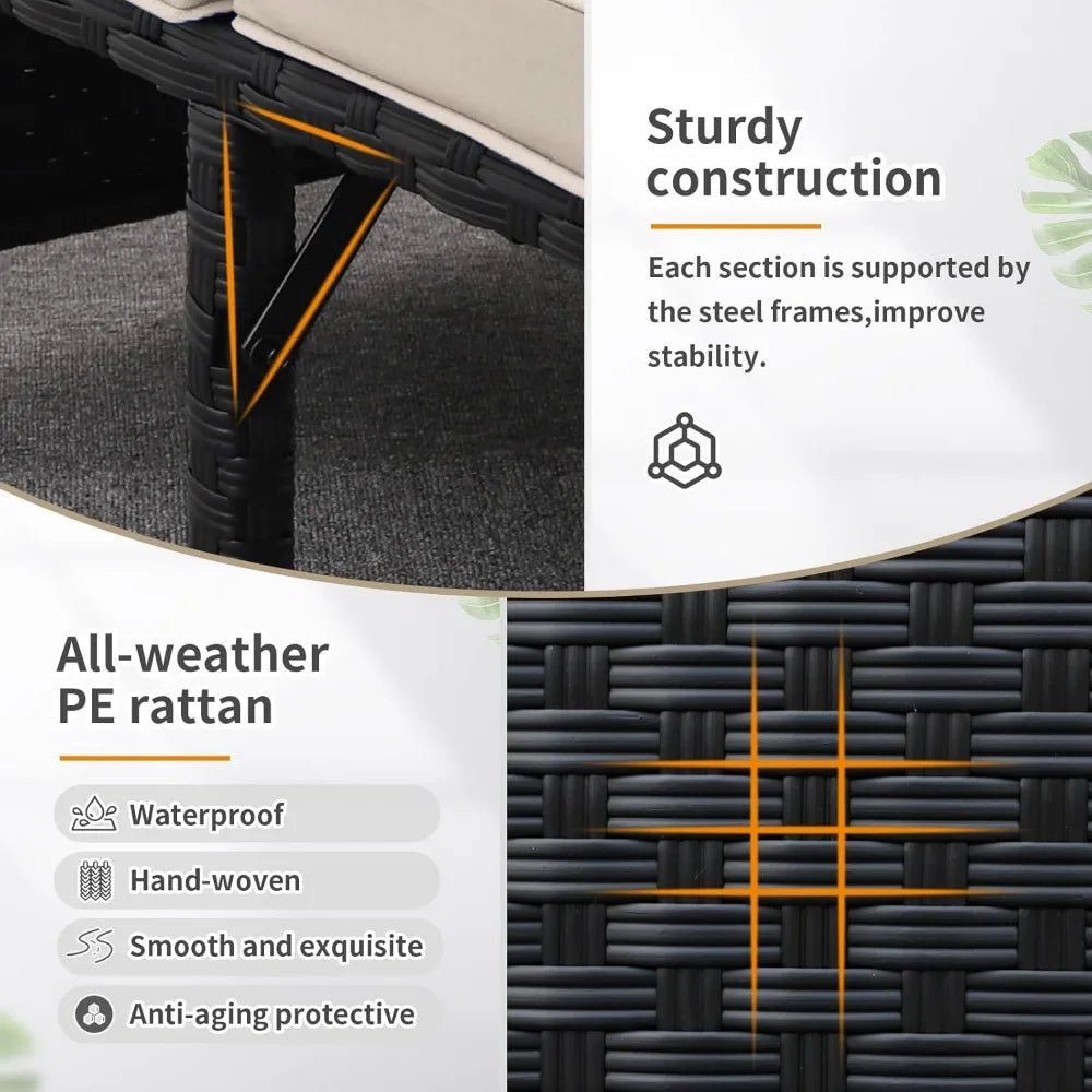 - SUPPORT ROD DESIGN:This outdoor conversation furniture built with anti-rust steel frame and all-weather PE rattan;the support rods are used in the middle of the loveseat and the middle of lounge sofa, which can effectively reinforce the load-bearing function, making the set more durable,stable and comfortable.