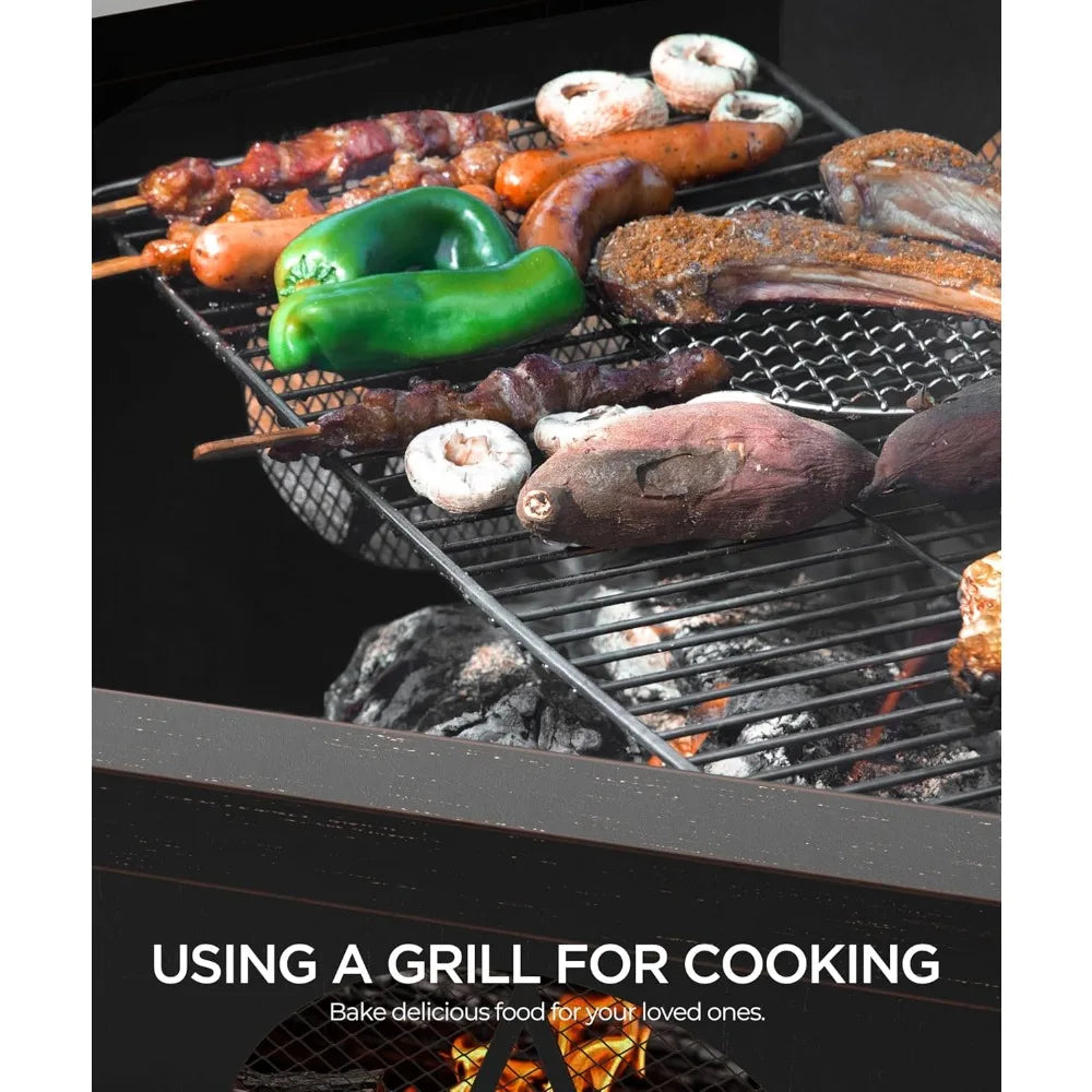 - Includes a cooking grill and poker so you can grill, keep food warm, or enjoy casual backyard cooking by the glow.