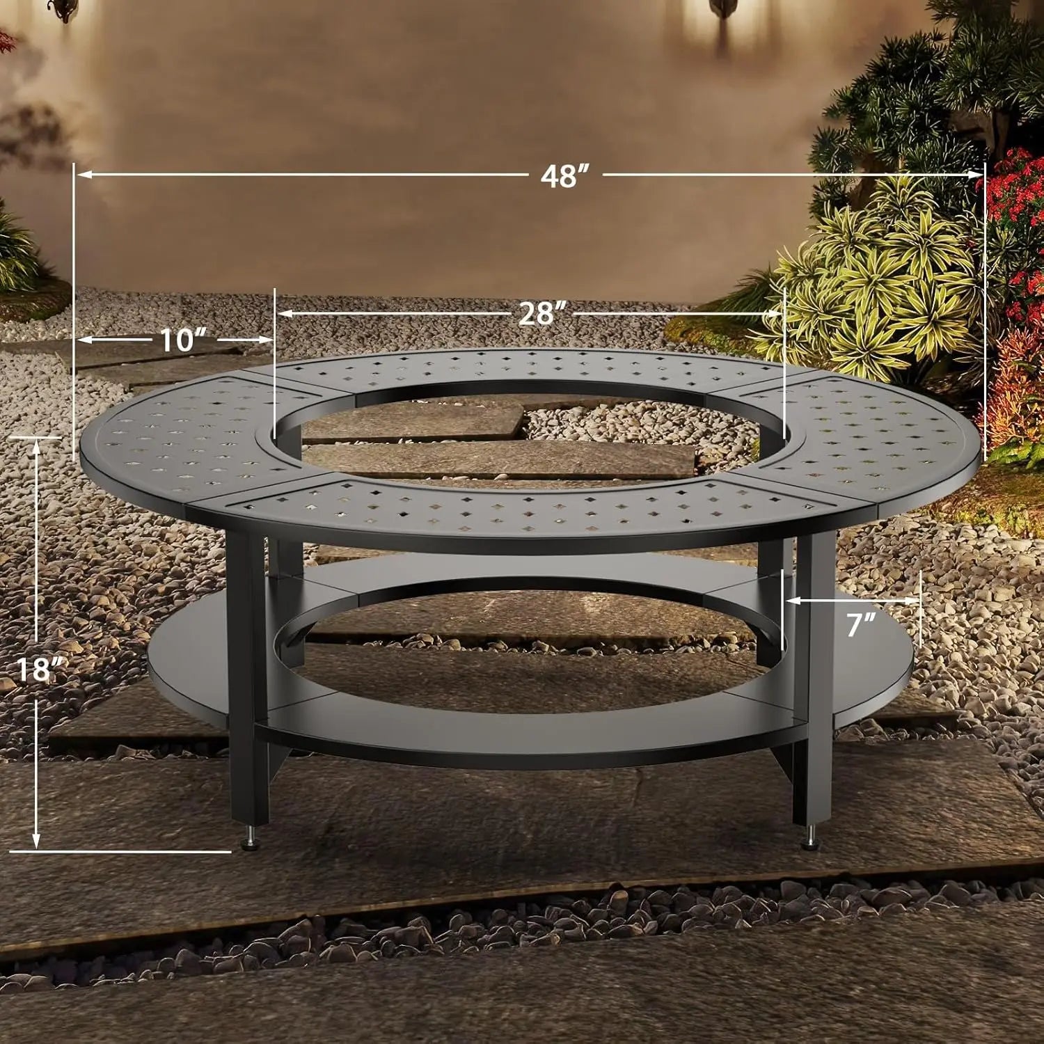 48" Fire Pit Surround Tabletop , Powder-Coated Steel Surround Table with Firewood Storage Shelf for Safety & Extra Space