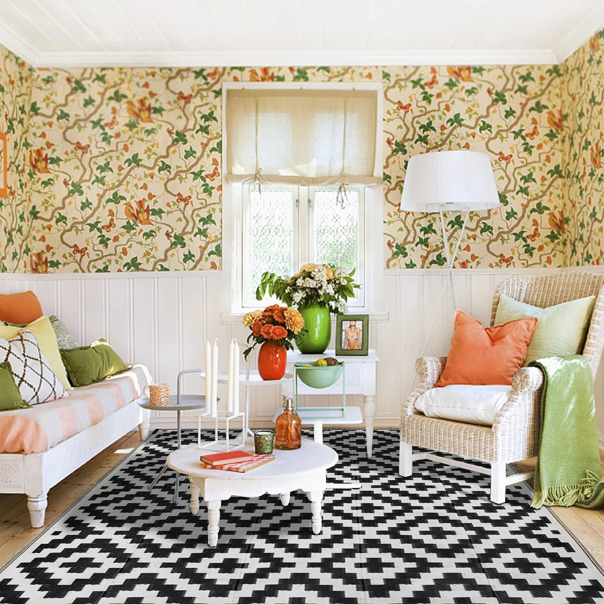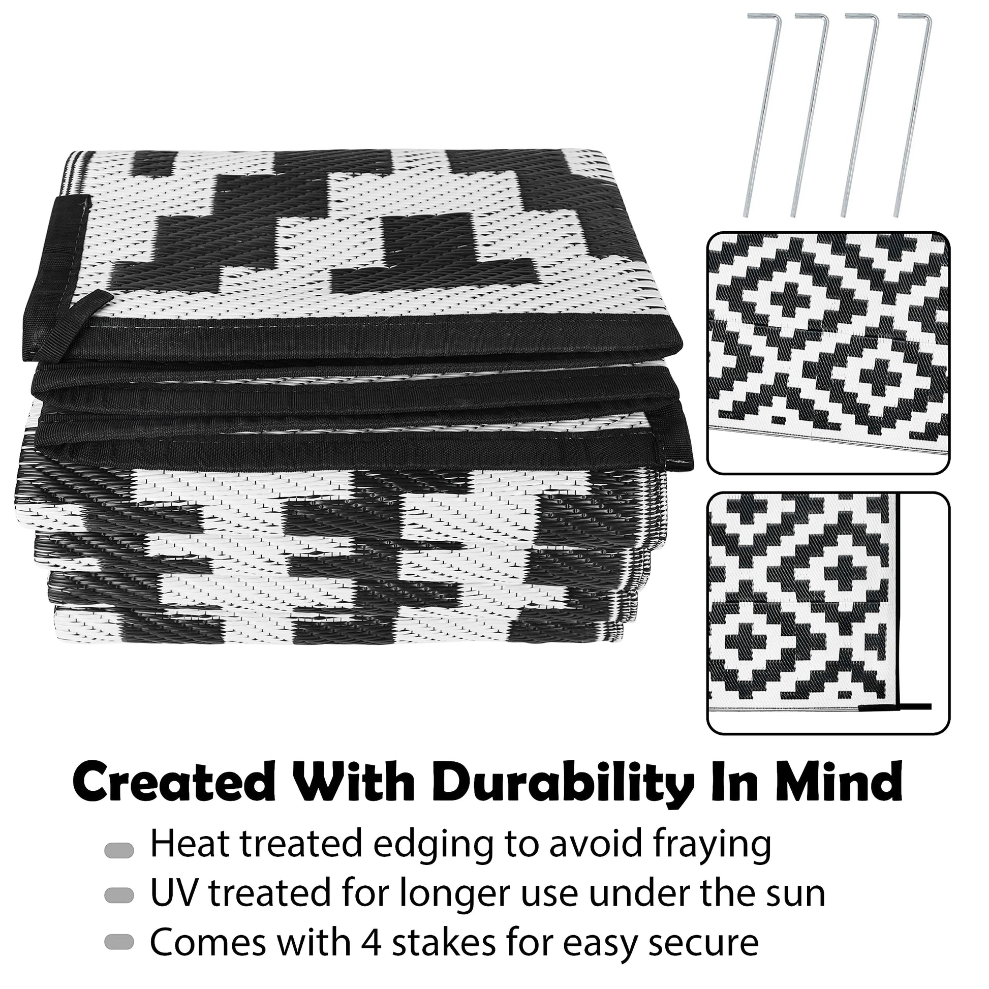 6 x 9 FT camping rug for RV mats outside, indoors, outdoor porches, decks, backyards, camping, balconies, picnics, black&white