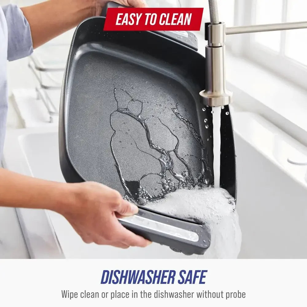 Our diamond-infused ceramic nonstick interior provides strength, scratch resistance, and simple cleaning Free of PFAS, PFOA, lead, and cadmium for healthier meals every time 5-In-1 Design: Fry, Sauté, Bake, Grill & Steam Spacious 7QT capacity gives you more room to craft large meals for the whole family One-knob control makes it easy to adjust your temperature for perfect results Durable glass lid allows you to watch your meal in progress without losing heat Stay-cool handles allow you to transport your griddle safely & securely Rinse and wipe the skillet clean for an effortless cleanup 200 watts
