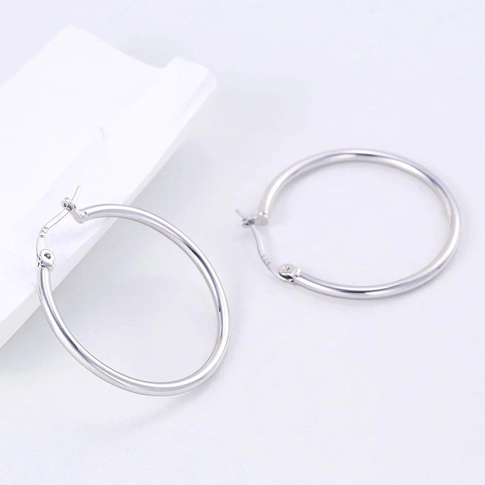 925 Sterling Silver Hoop Earrings For Women Girl's Smooth Circle Loop Statement Earrings Fashion Fine Jewelry Gift Stock in USA