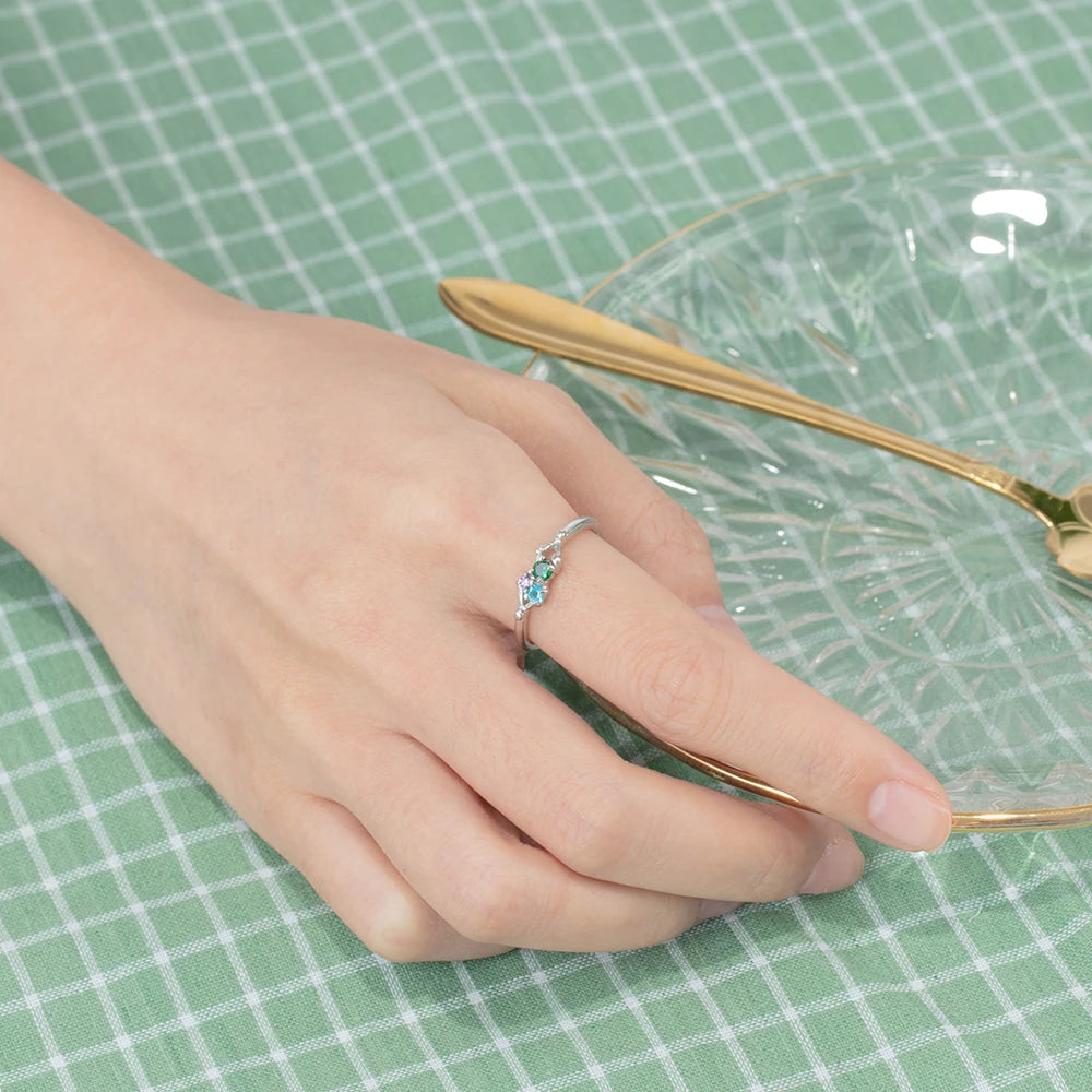 - Features a zircon centerpiece framed by three birthstones on a sleek 925 sterling silver band, designed for comfortable wear every day.