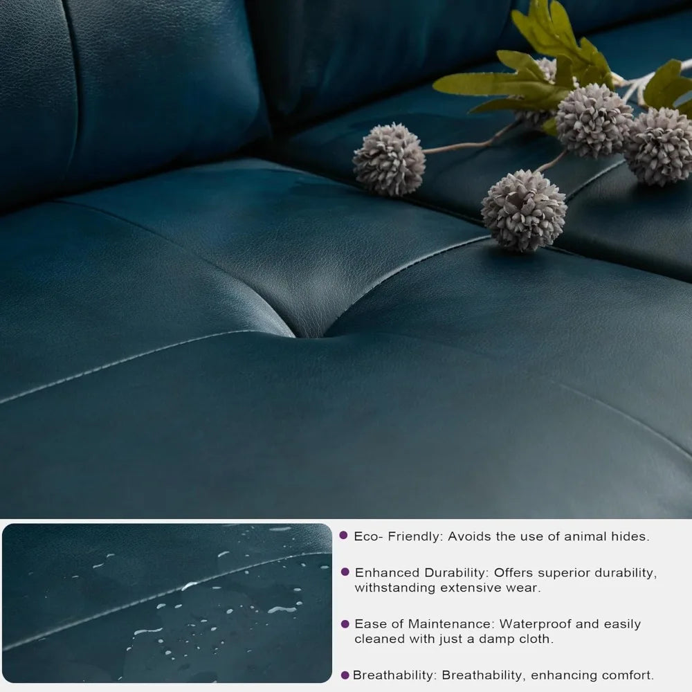 - You receive a stylish 2-piece set in blue faux leather with a tufted back, designed to instantly elevate your room’s aesthetic.