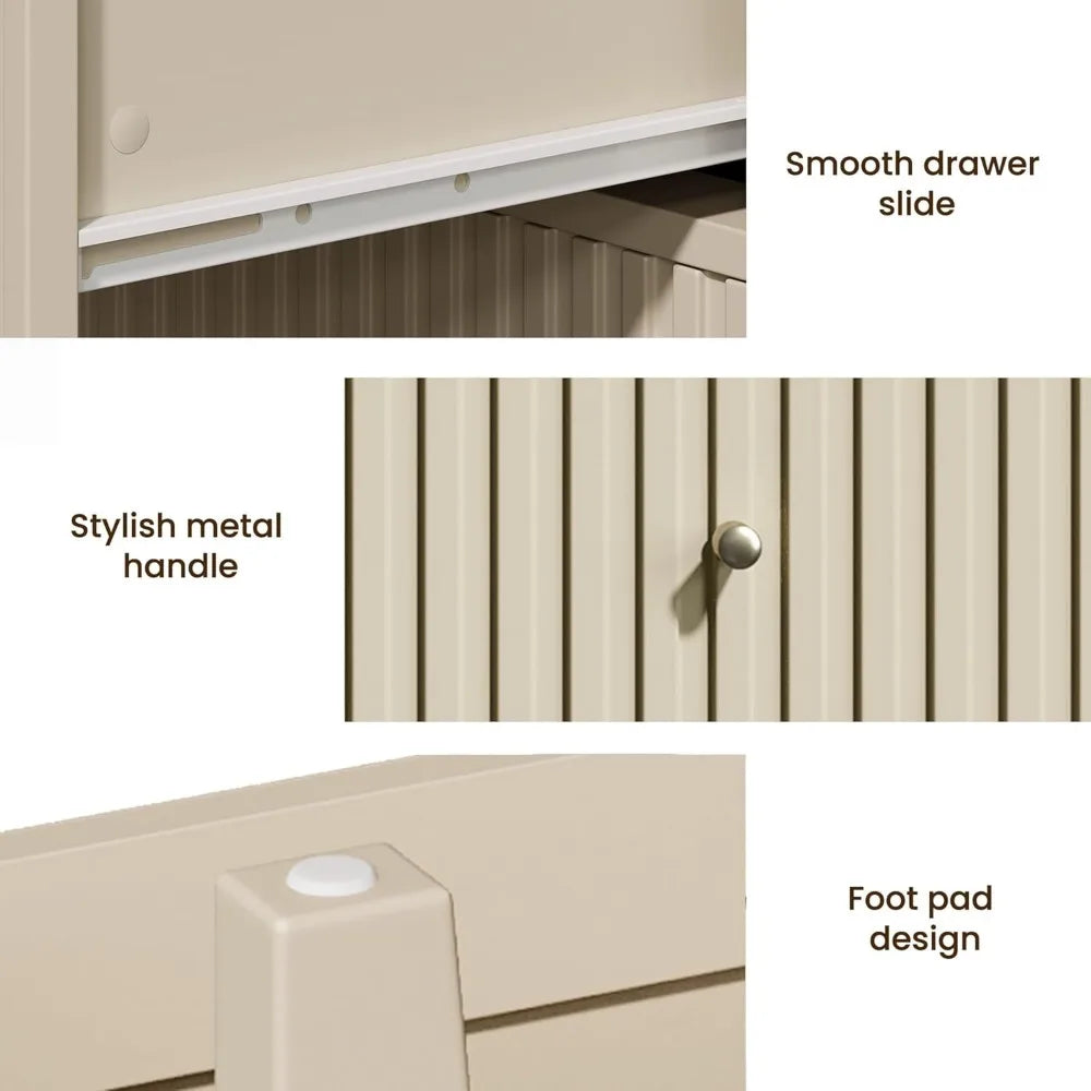 Beige Fluted Nightstand Set of 2, Colorful Nightstand with 2 Drawers, Modern Wooden End Table with Storage for Small Spaces, Si