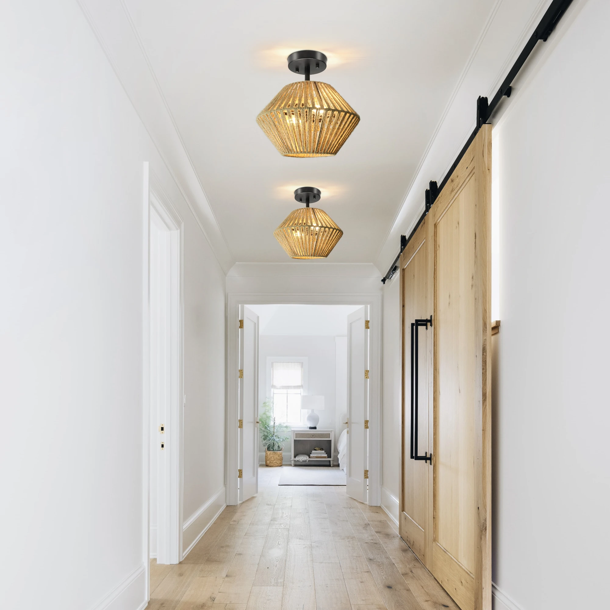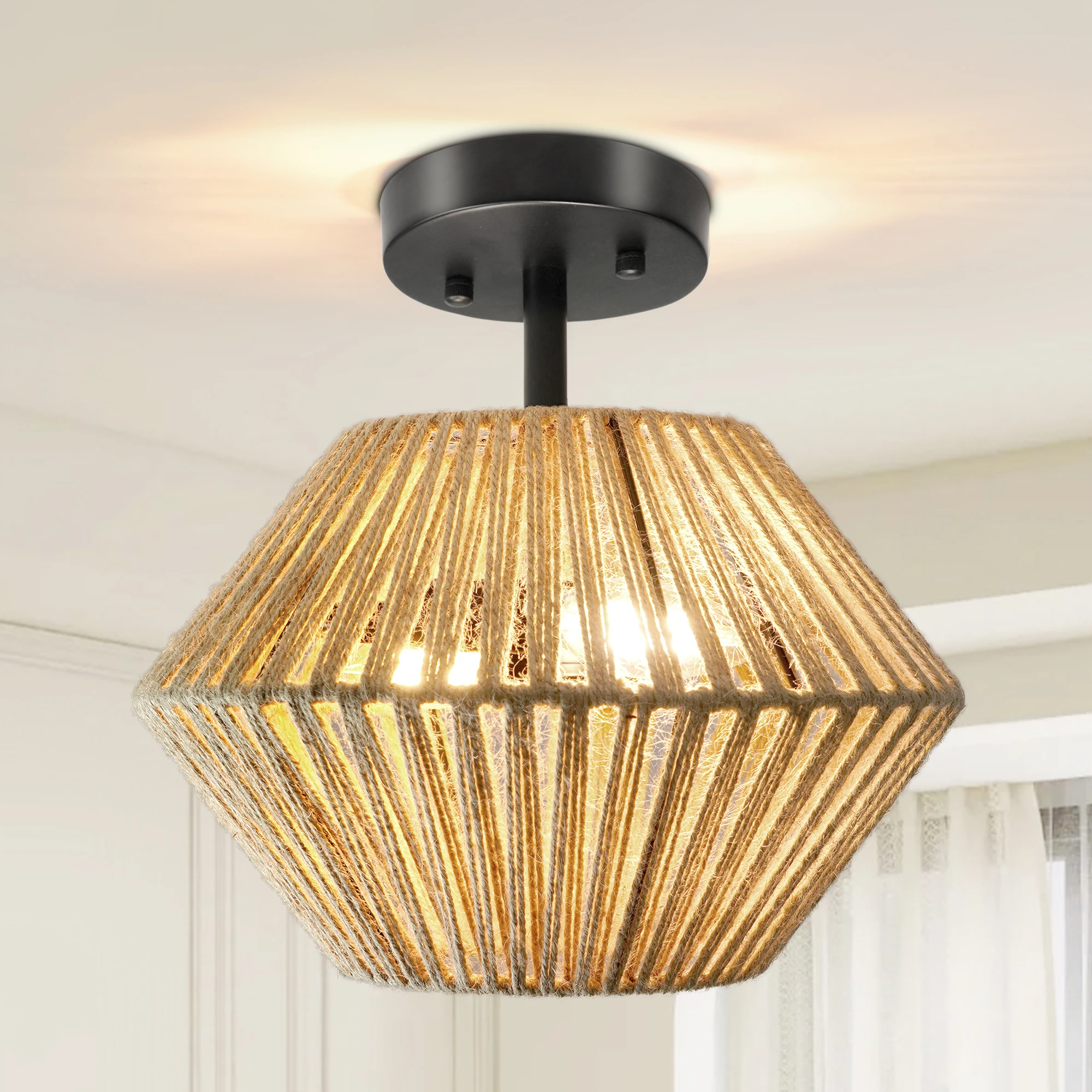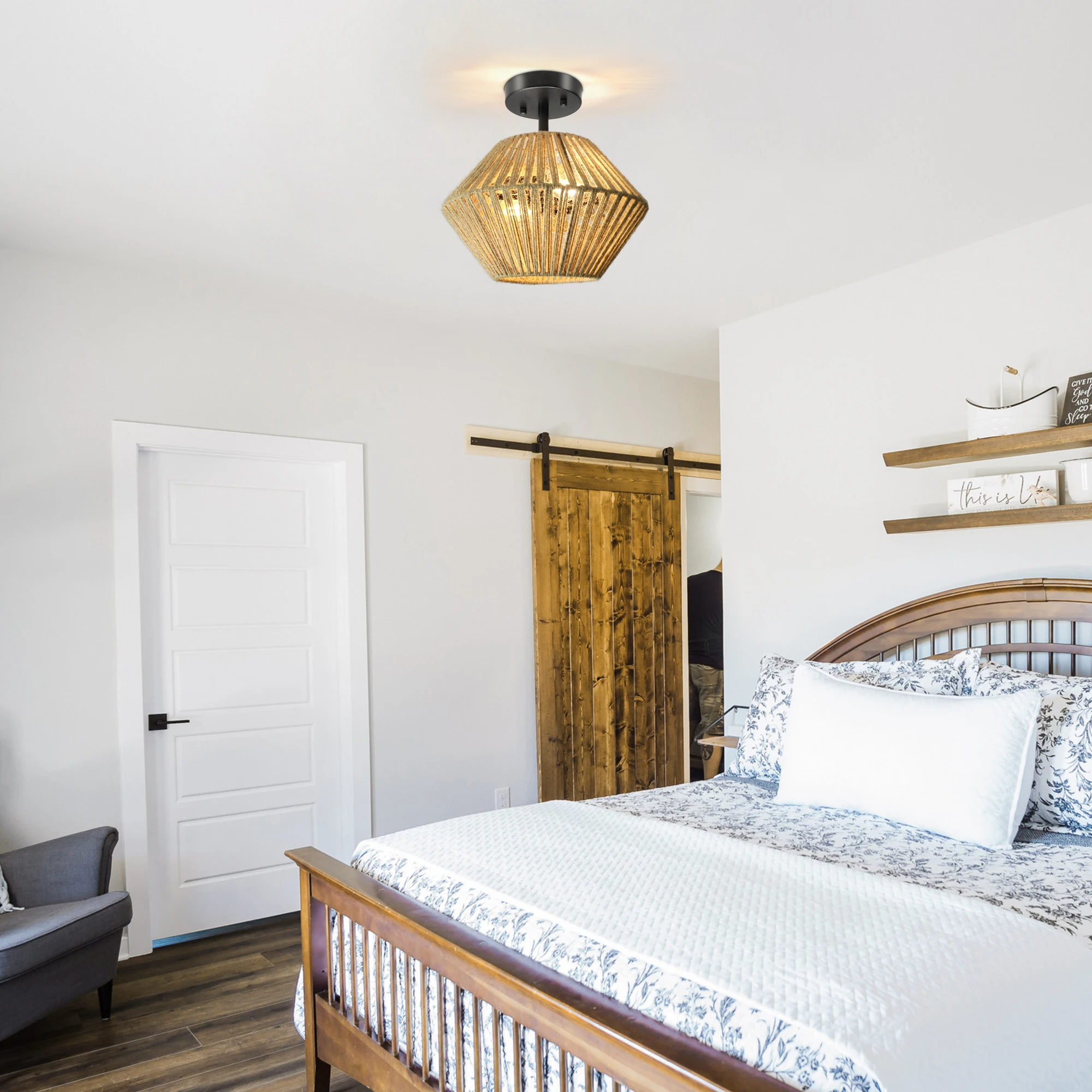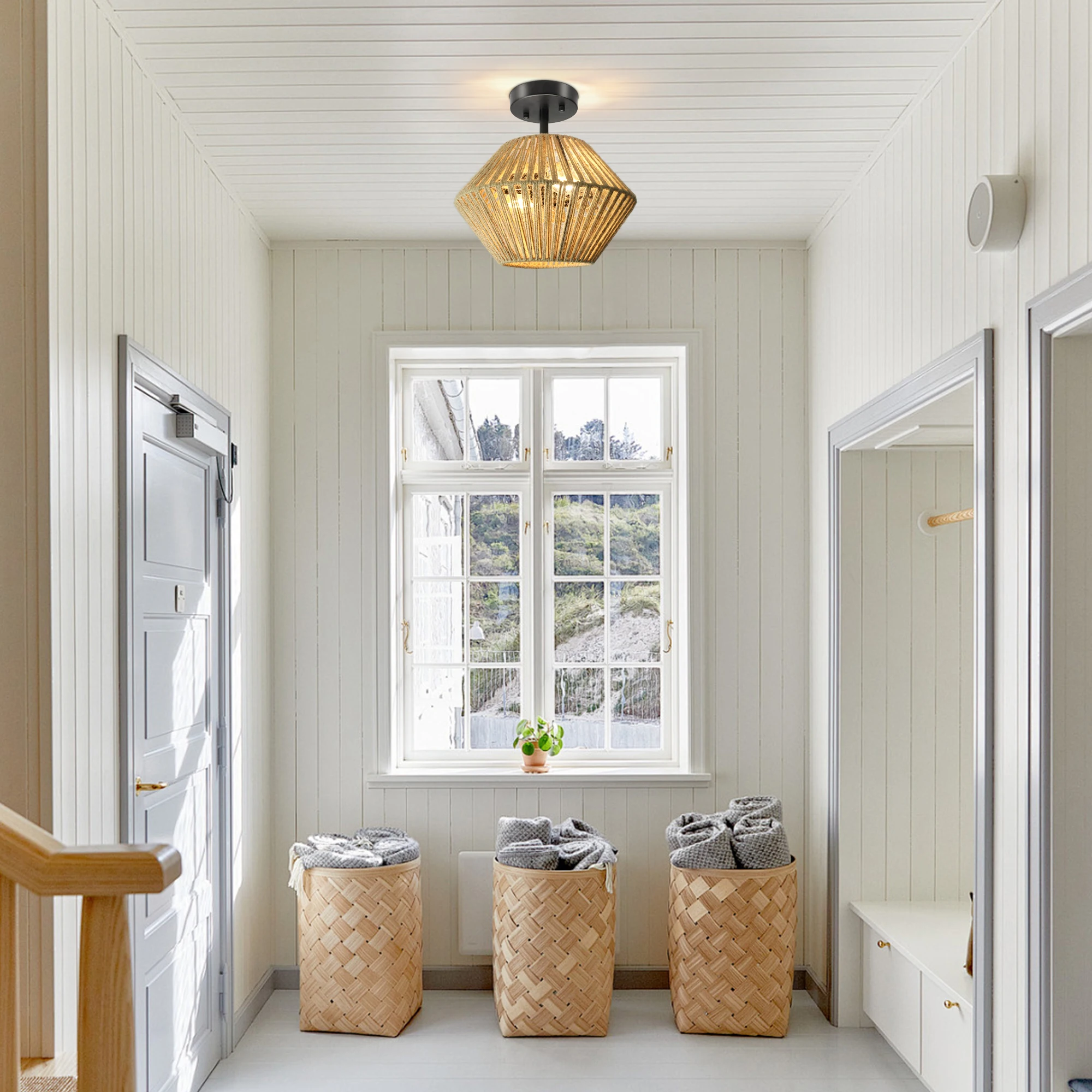 Bohemian Rattan Cloakroom Ceiling Light, Hand-Woven Living Room Ceiling Lamp, Modern Minimalist Bedroom Ceiling Lights