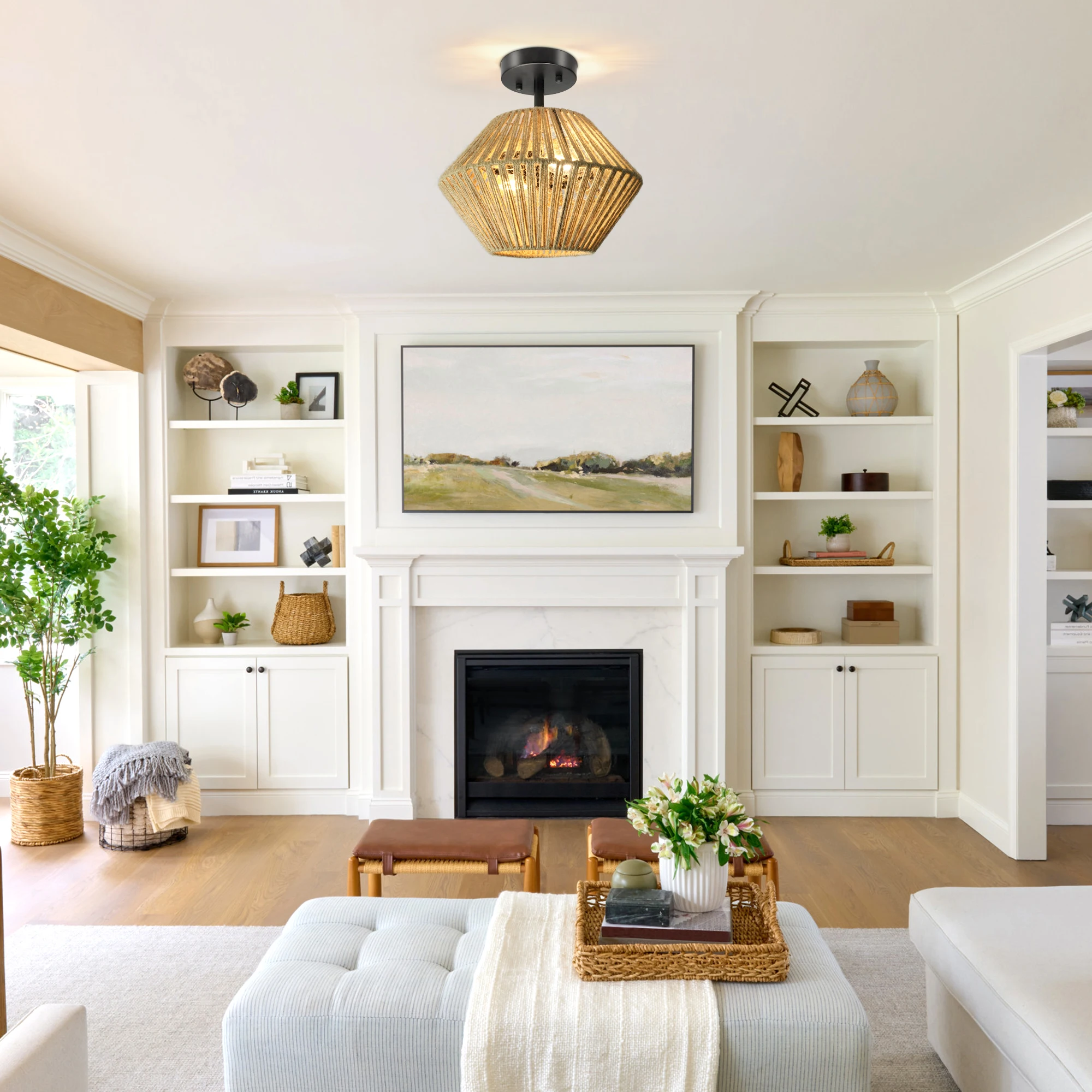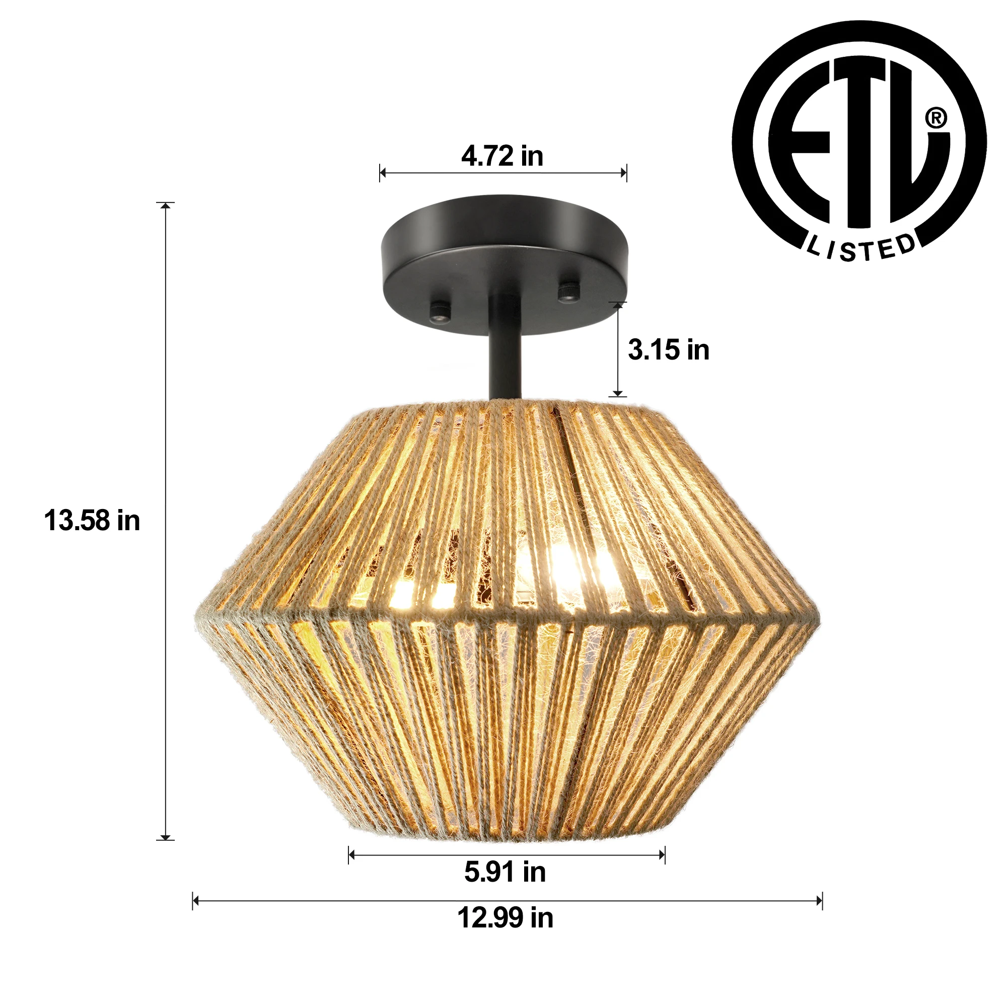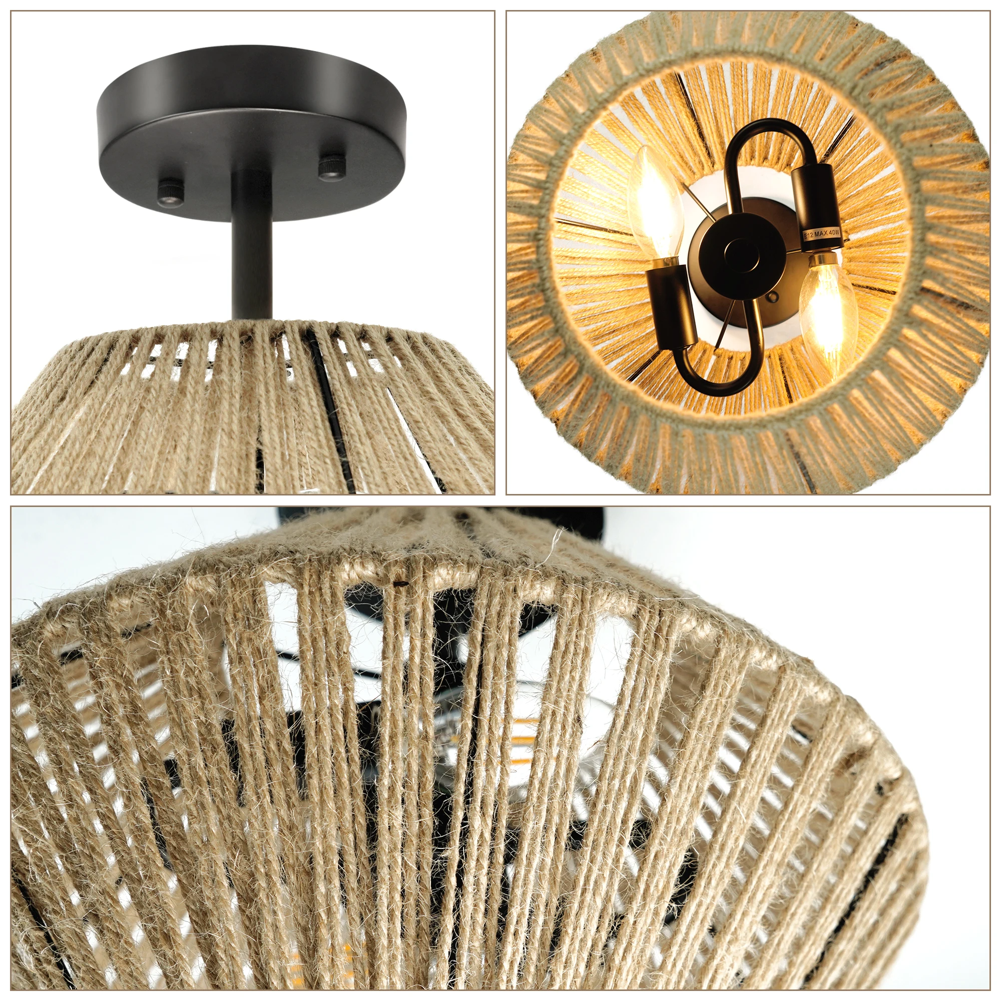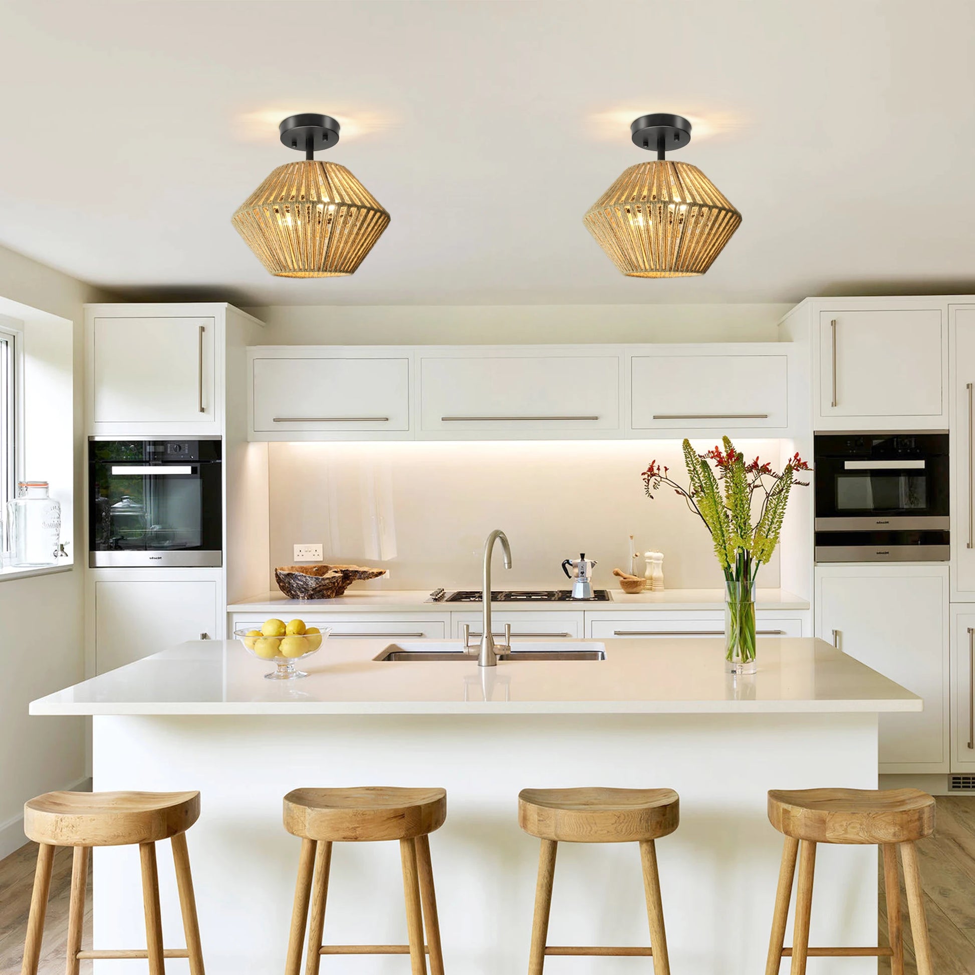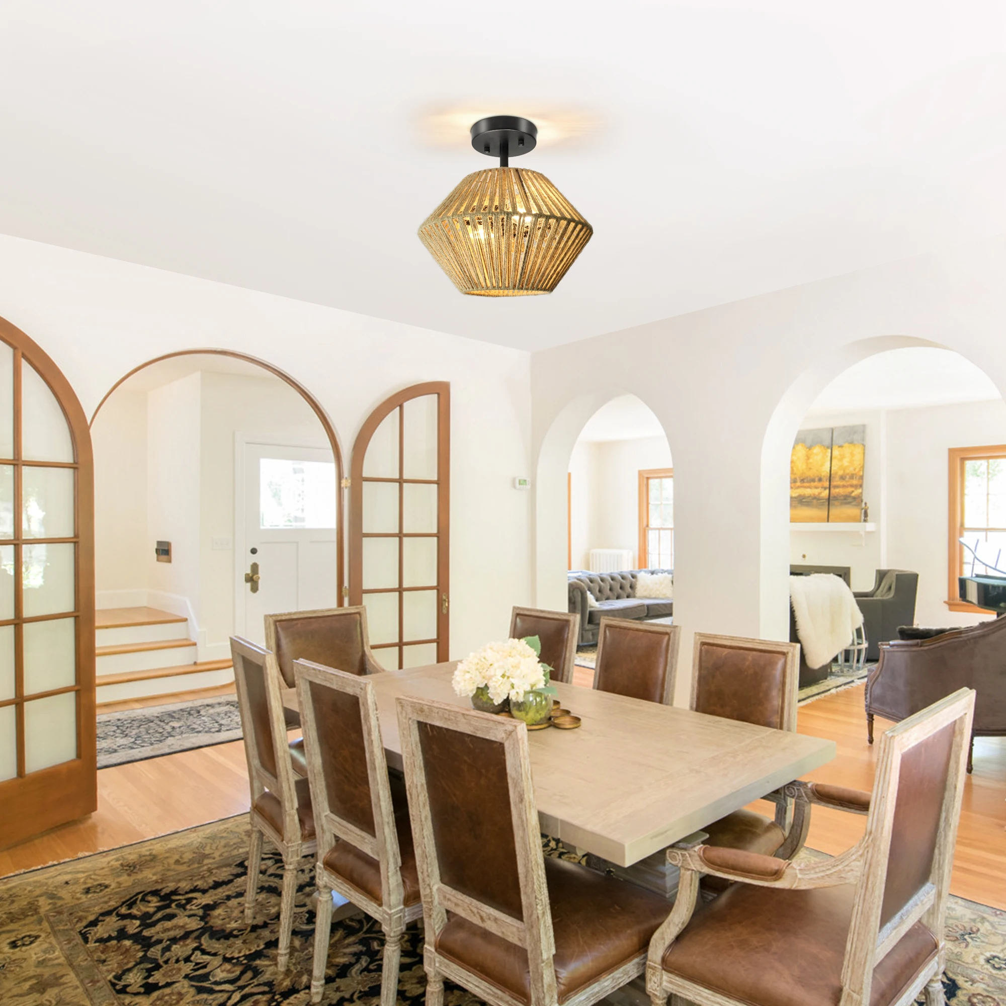 Bohemian Rattan Cloakroom Ceiling Light, Hand-Woven Living Room Ceiling Lamp, Modern Minimalist Bedroom Ceiling Lights