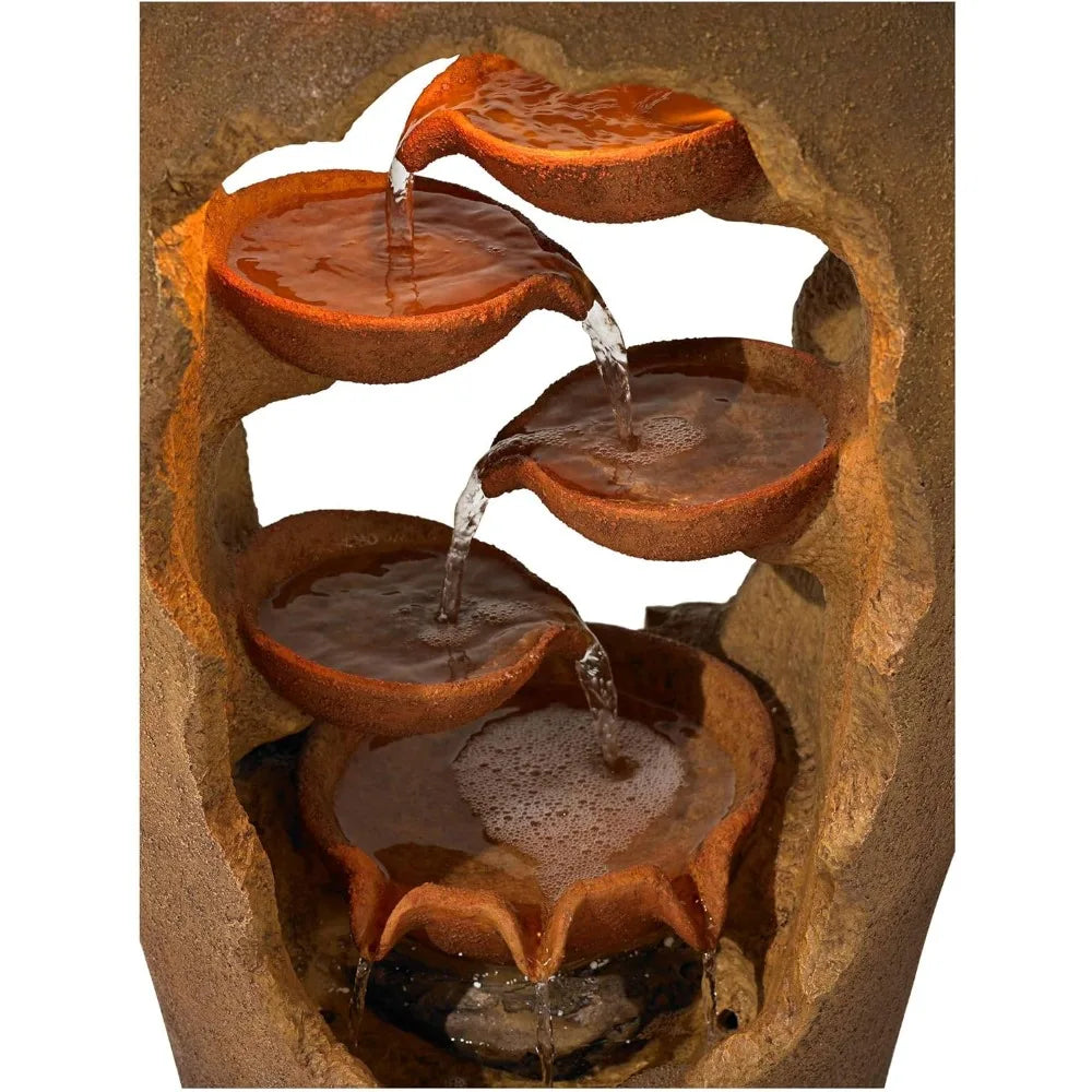 Elevate your space with a graceful urn waterfall fountain that glows with built-in LED lighting and pours water in a tranquil, cinematic display.
