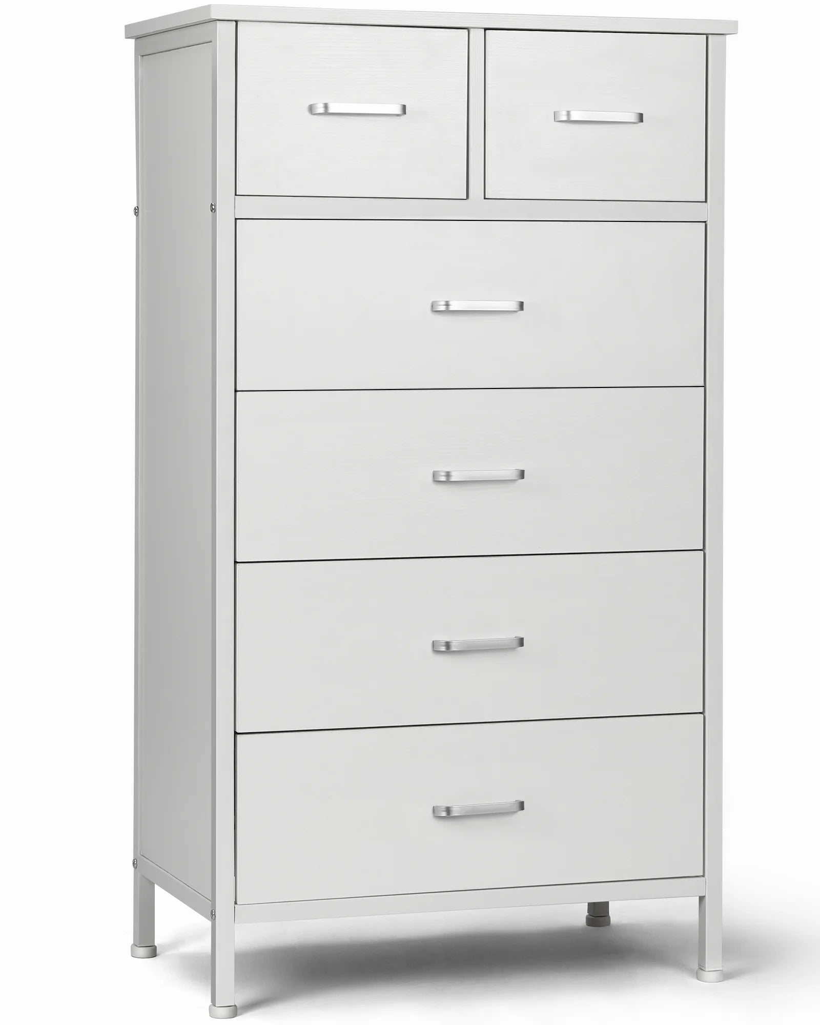 Chest of 6 Drawers, Drawer Dresser storage organizer for Bedroom, Living Room, Storage Cabinet Dresser with Steel Frame, White