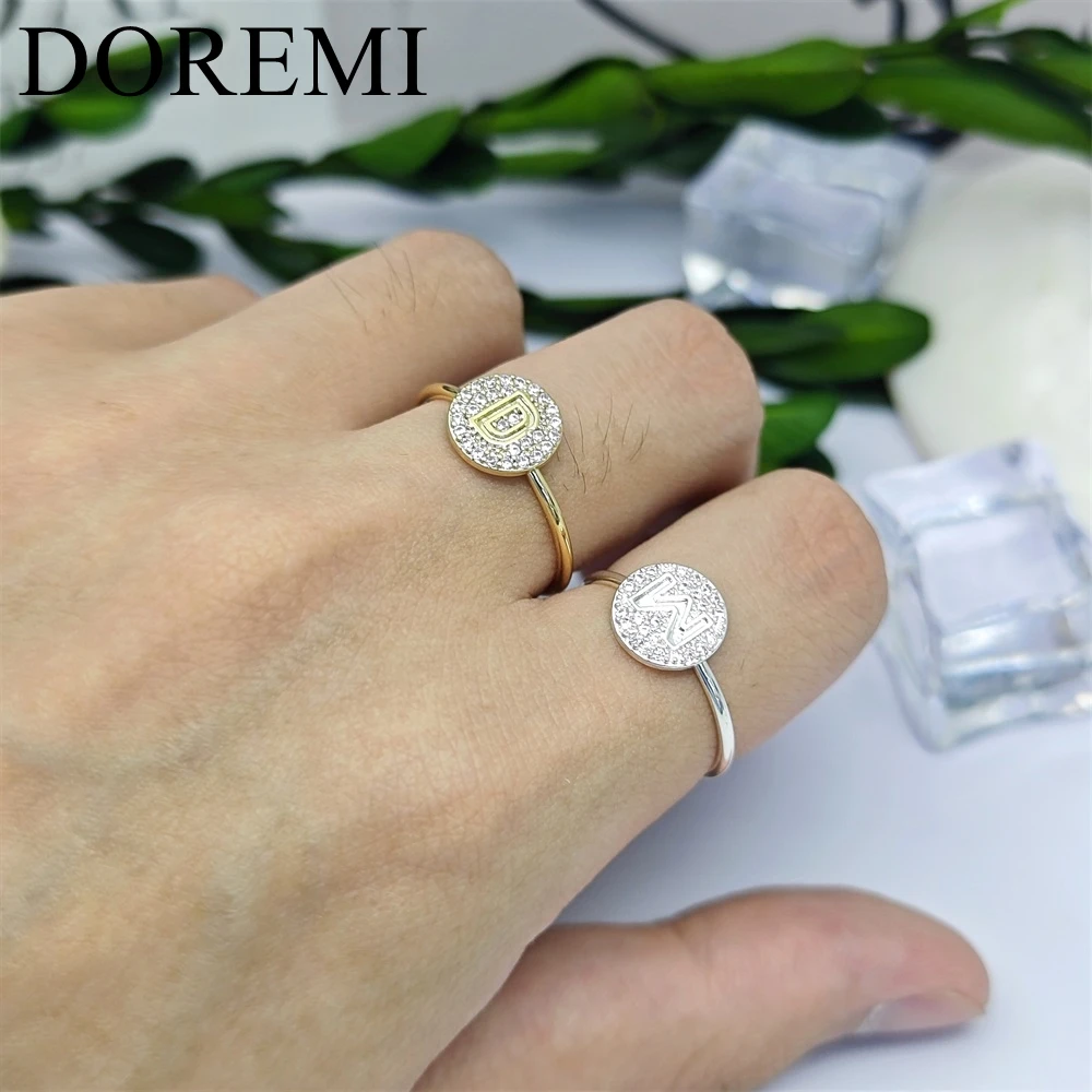 Doremi Initial Letter Ring Women Micro Pave Zircon Custom