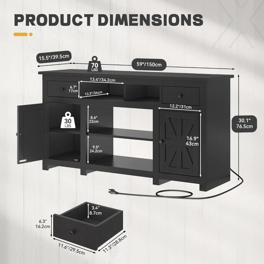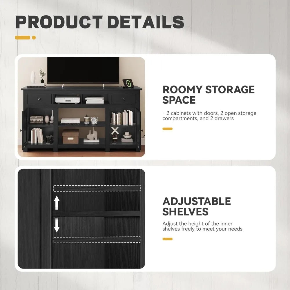 Farmhouse TV Stand With Storage Cabinets And Drawers