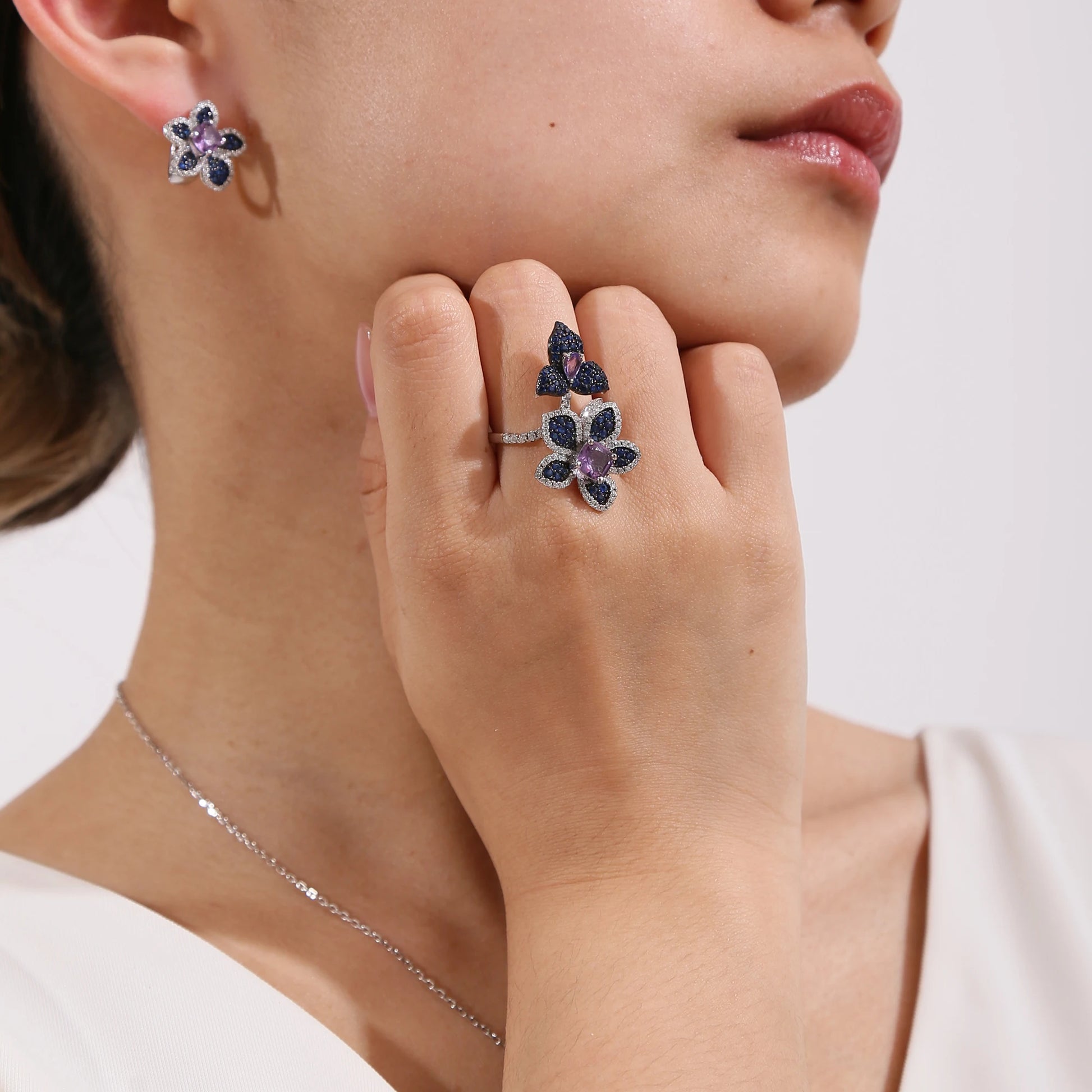 Elevate every look with the GEM'S BALLET 925 Sterling Silver Adjustable Ring, spotlighting a gleaming amethyst centerpiece that shines with timeless elegance.