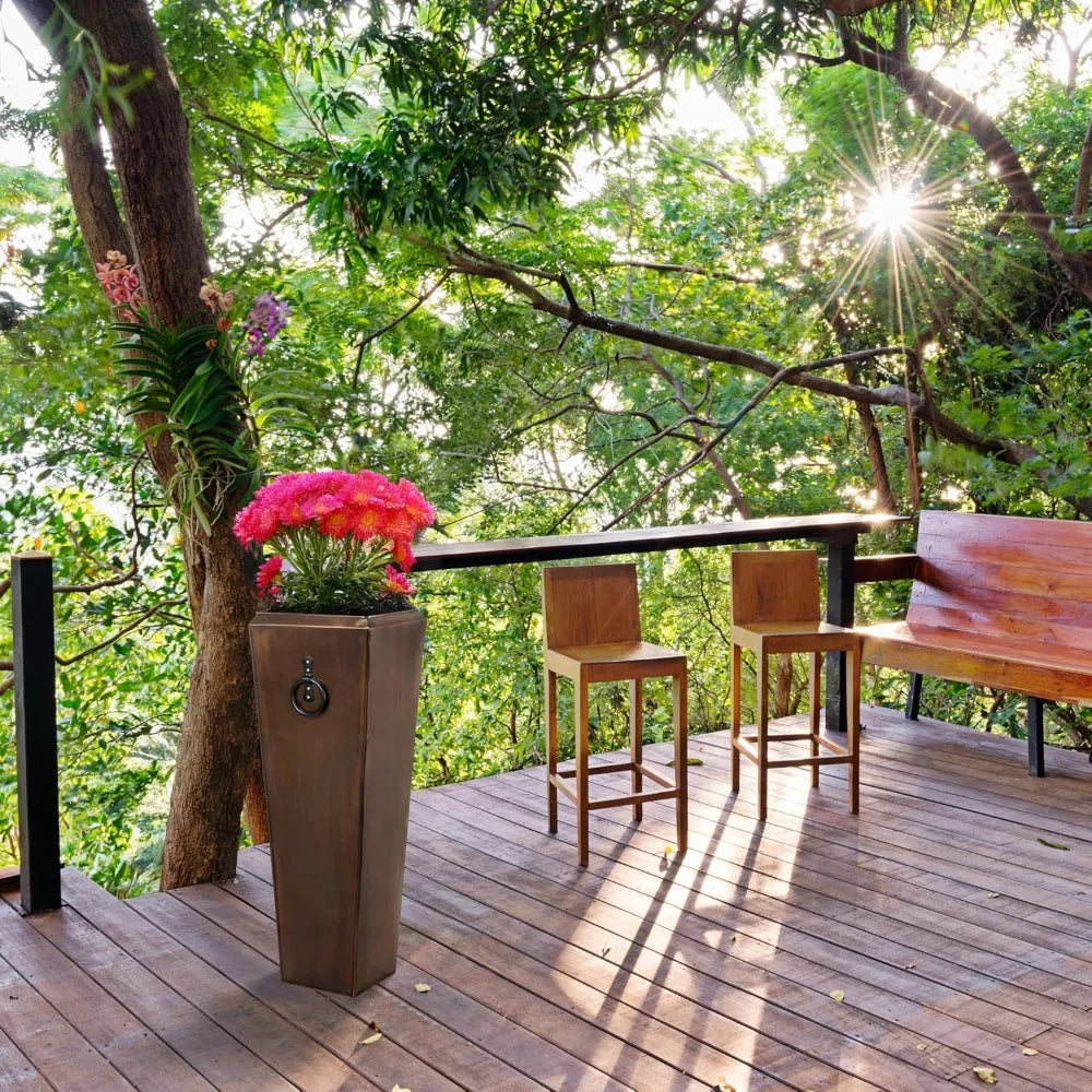- Lightweight Stainless Steel: This tall planters is handcrafted from durable and lightweight stainless steel with H Potter's one of a kind antique copper finish and a clear lacquer coating to help protect the pot as it stands out around your home and garden.