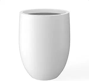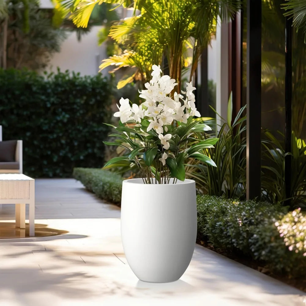 Kante 21.7" H Snow White Concrete Tall Planter, Large Outdoor Indoor Decorative Pot with Drainage Hole and Rubber Plug, Modern R