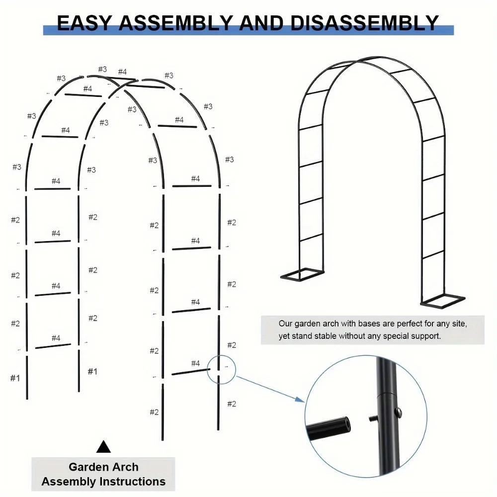 Metal Garden Arch Trellis High Assemble Freely 2 Sizes, Garden Arbor for Wedding Party Climbing Plant Outdoor Indoor