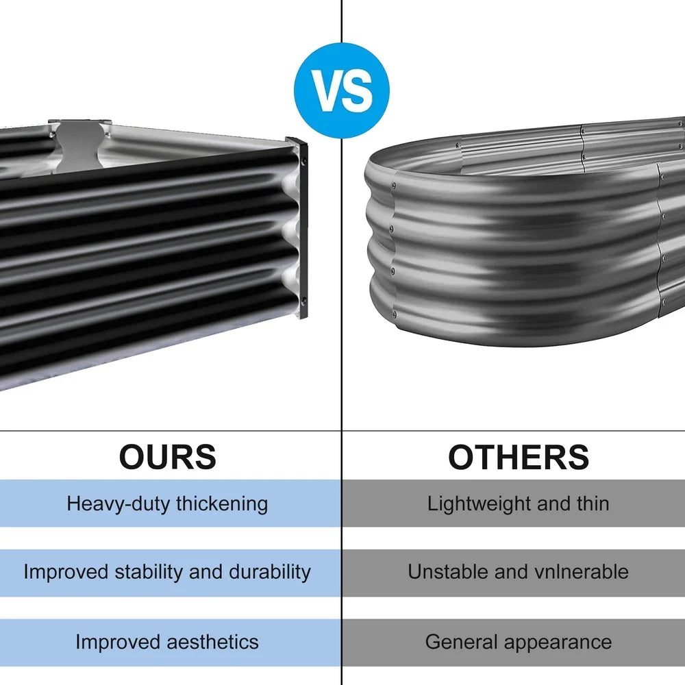 This raised garden bed kit stands out in the gardening market by combining functionality with sustainability. Unlike traditional wooden planters that can rot or warp over time, our galvanized steel construction guarantees a long-lasting investment for your garden.