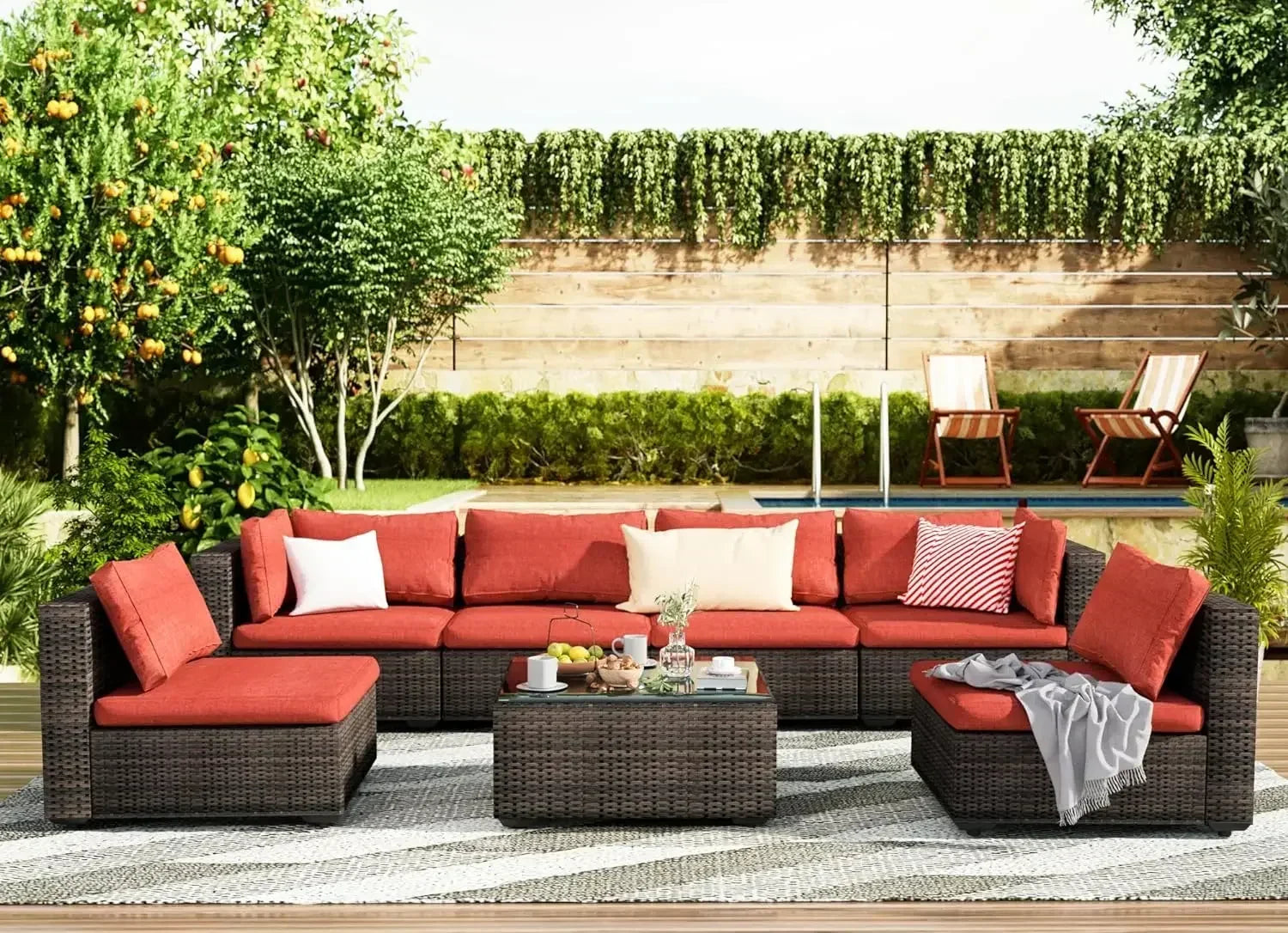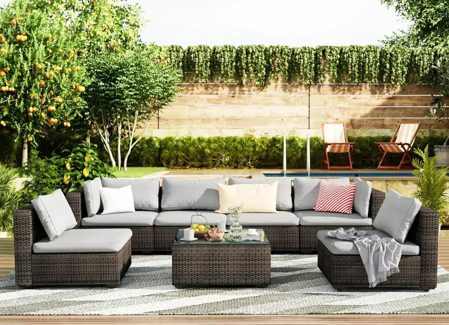 - 【 Upgraded Cushion 】: The Piece Patio Furniture Set is equipped with high-quality upgraded sponges, making you more comfortable and relaxed. The detachable zipper design facilitates quick disassembly and cleaning. The upgraded cushion cover material will bring better splash resistance, be sturdy enough to withstand various weather resistance.