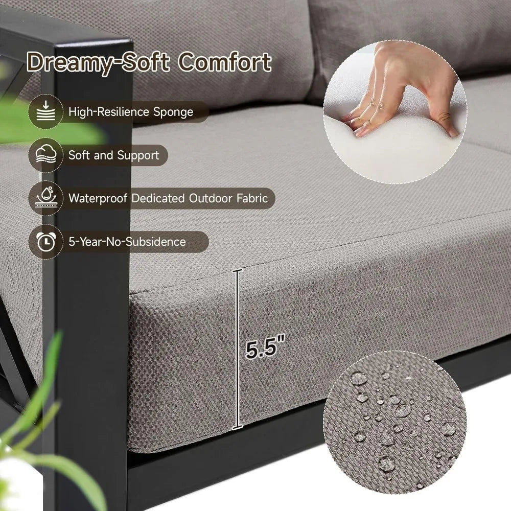 - Spacious L-shaped layout measures 78 x 27.5 x 29.5 inches and weighs 131.22 pounds, providing you with ample room for gatherings on patios, decks, or gardens.