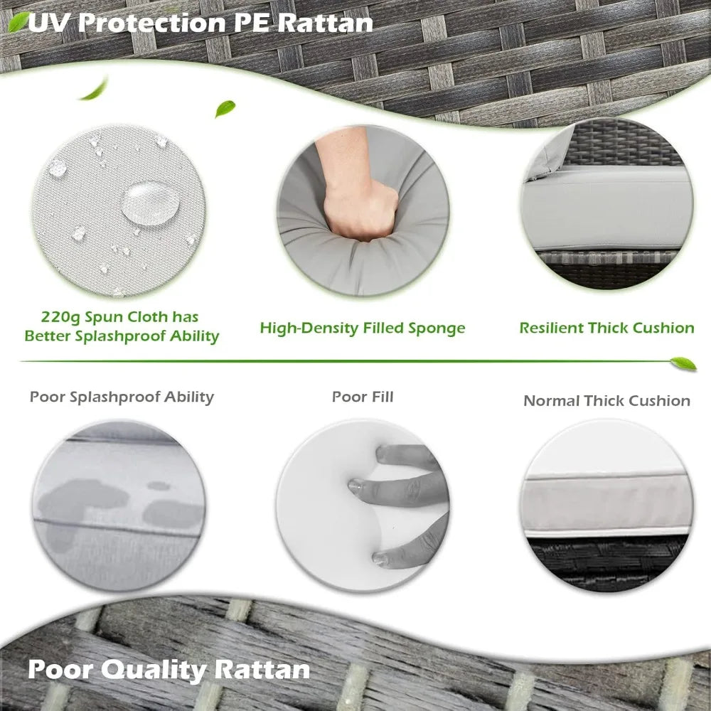 - Modern rectangular dining set with grey cushions and matching grey rattan delivers a timeless, weather-ready centerpiece for patios and gardens.