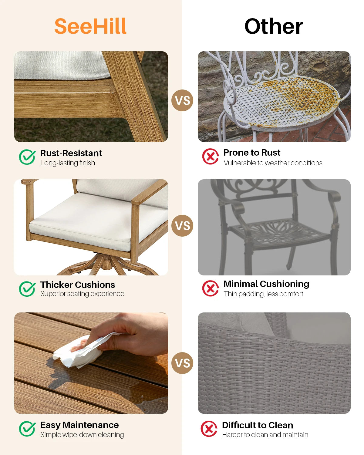 SeeHill Patio Furniture Set Aluminum Dining Swivel Chairs