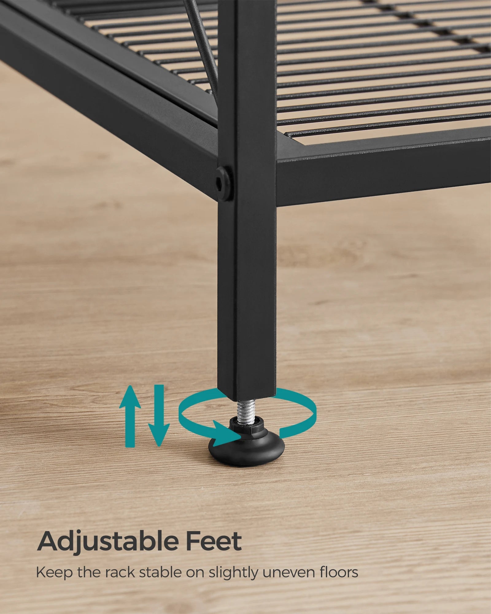 【ADJUSTABLE FEET】The plastic adjustable feet keep this metal storage rack balanced on slightly uneven floors and protect your floor from scratches