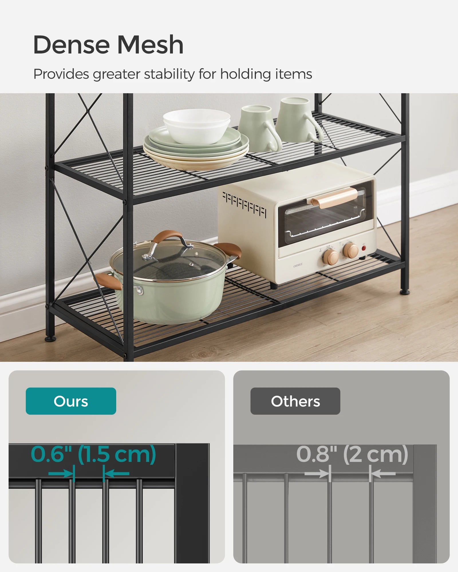 【RELIABLE SUPPORT FOR YOUR ITEMS】0.6" spacing between the metal wires of the mesh shelves for even smaller items. The sturdy steel frame provides strong support, with each shelf capable of holding up to 110 lb