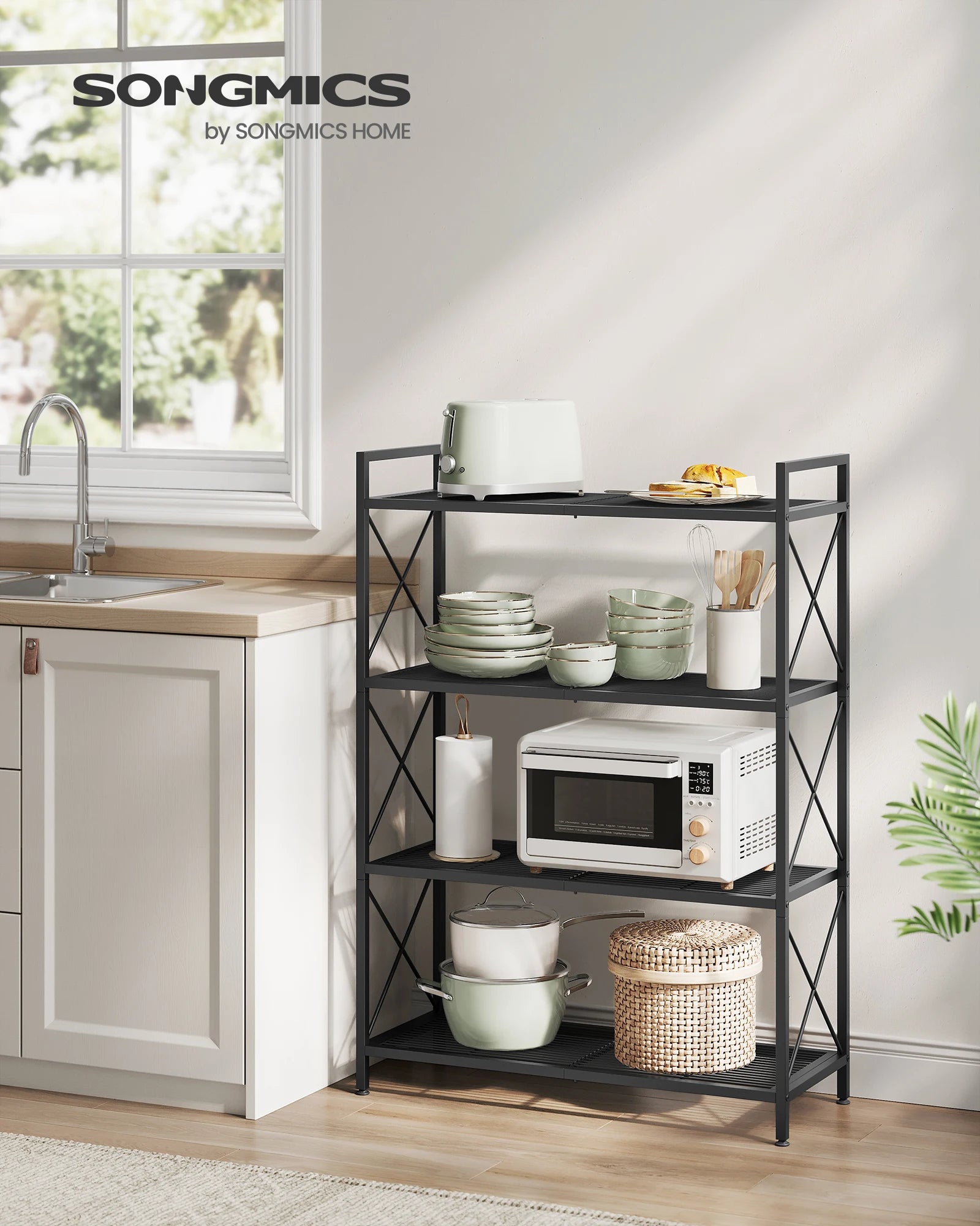 SONGMICS 4-Tier Metal Storage Rack, Shelving Unit with X Side Frames, Dense Mesh, 12.6 x 31.5 x 44.3 Inches, for Entryway