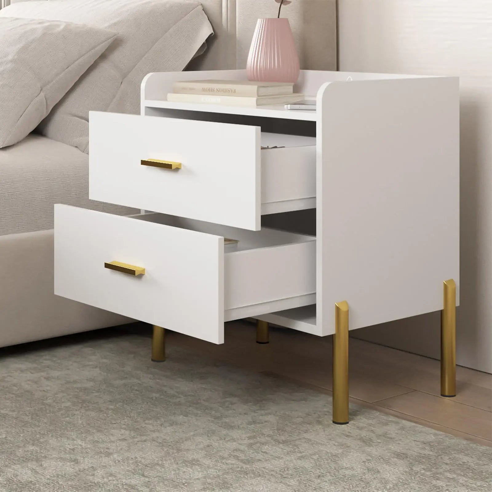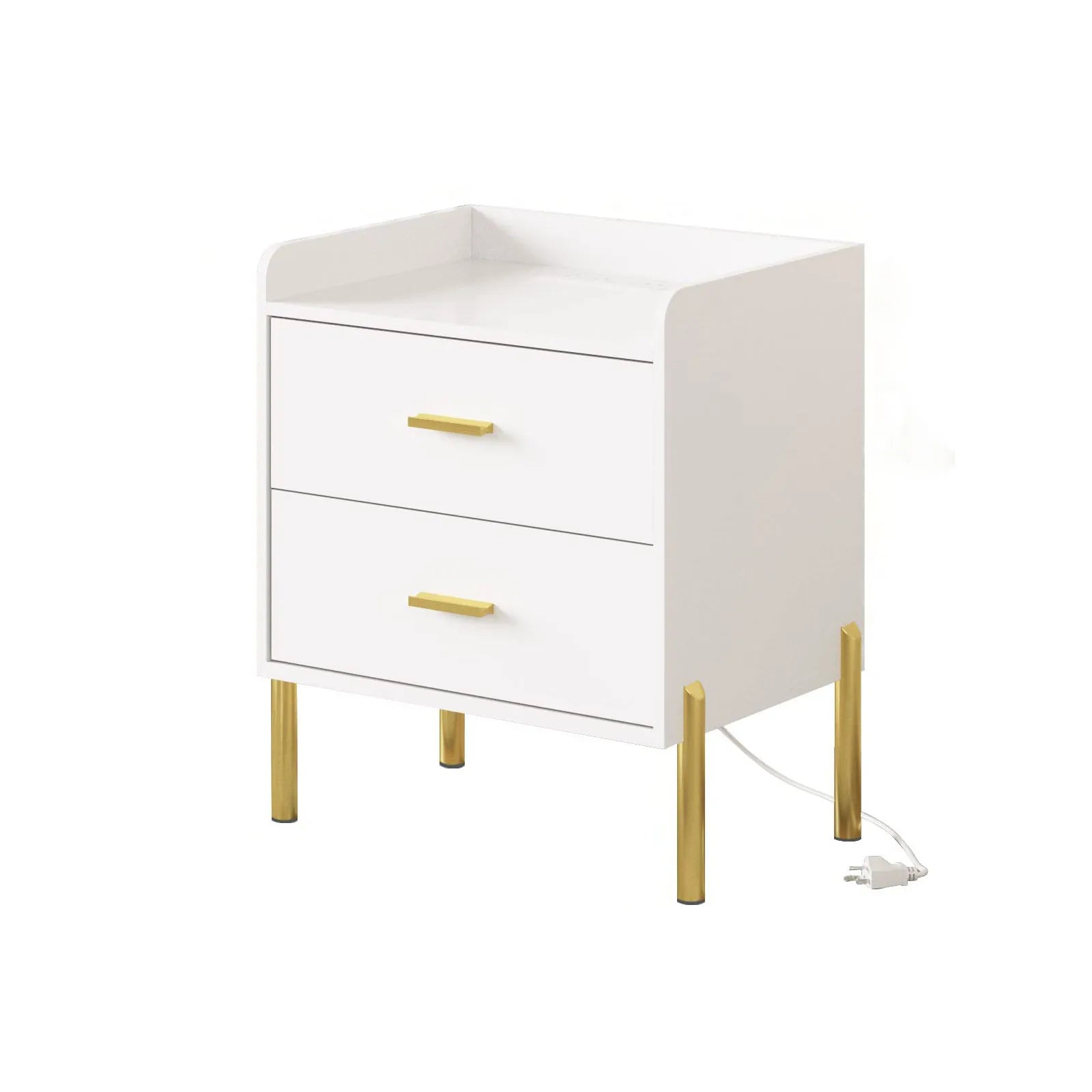 - Two-drawer design provides ample bedside storage while the integrated charging station keeps your devices powered and within reach.
